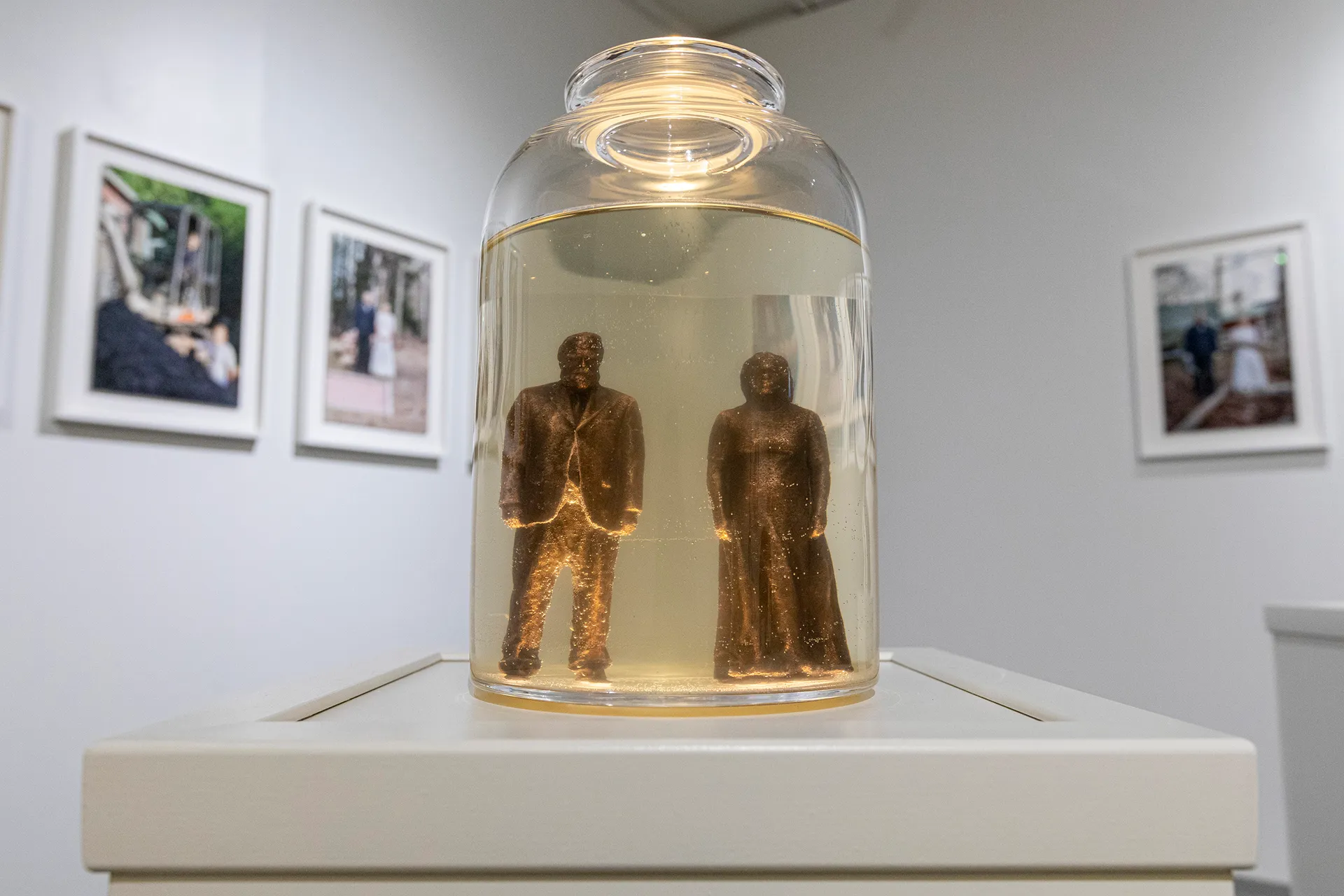 It is an ongoing project that uses destructive materials like organisms and bacteria. It includes small sculptures of a wedding couple that are trying their best to survive. For example, a couple made of soap is standing under a leaking faucet. In the same series there are also video works which depict floating over time. The whole work is a continuation of the series Bears All Things and Love Never Fails.