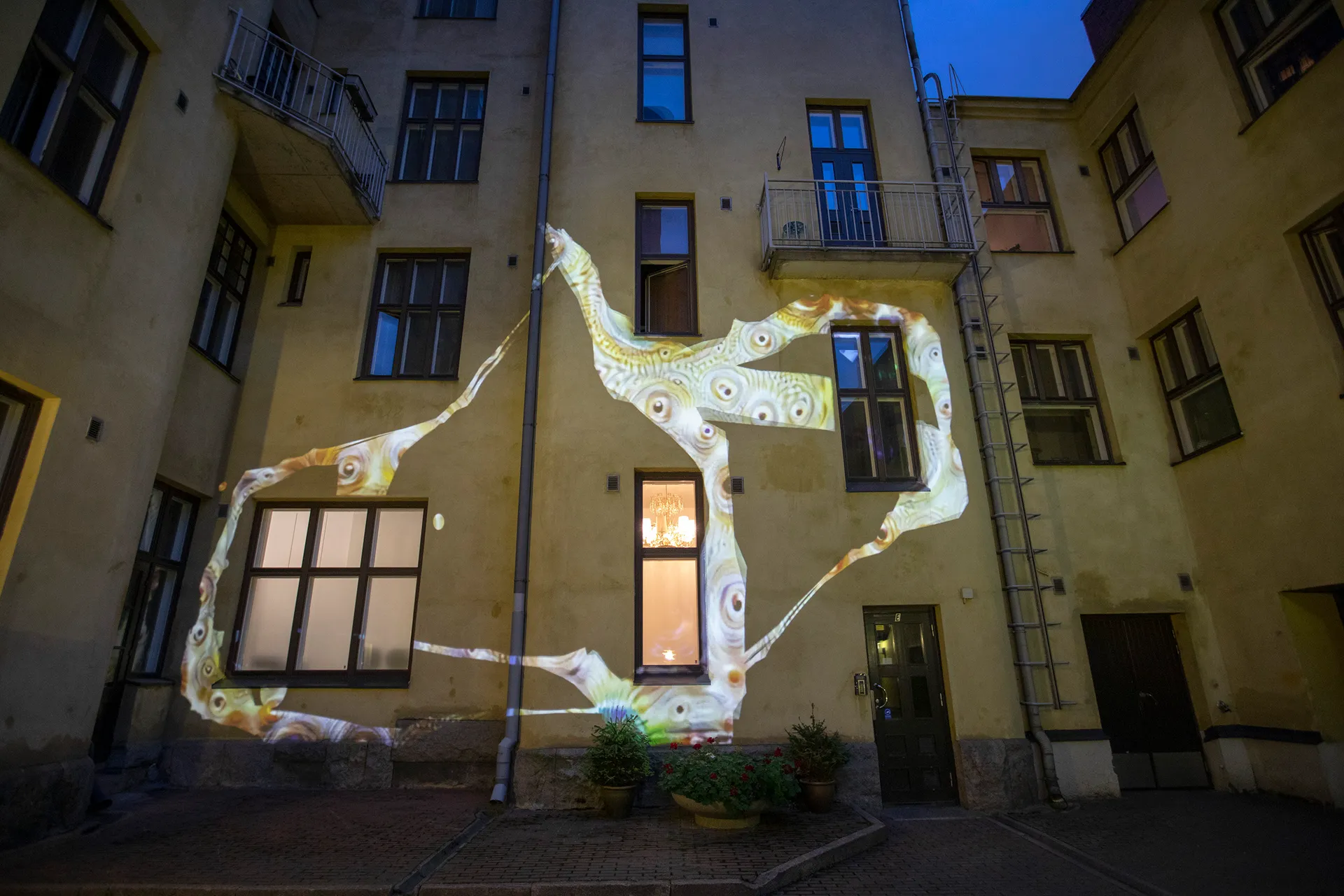 Neural Wall was made specially for Night of the Art Helsinki 2018 and it was last part of the exhibition Fragmented Landscape in Gallery Hippolyte, Helsinki, Finland. The projection mapping work was an intimate experience in the small inner ward in the center of Helsinki.