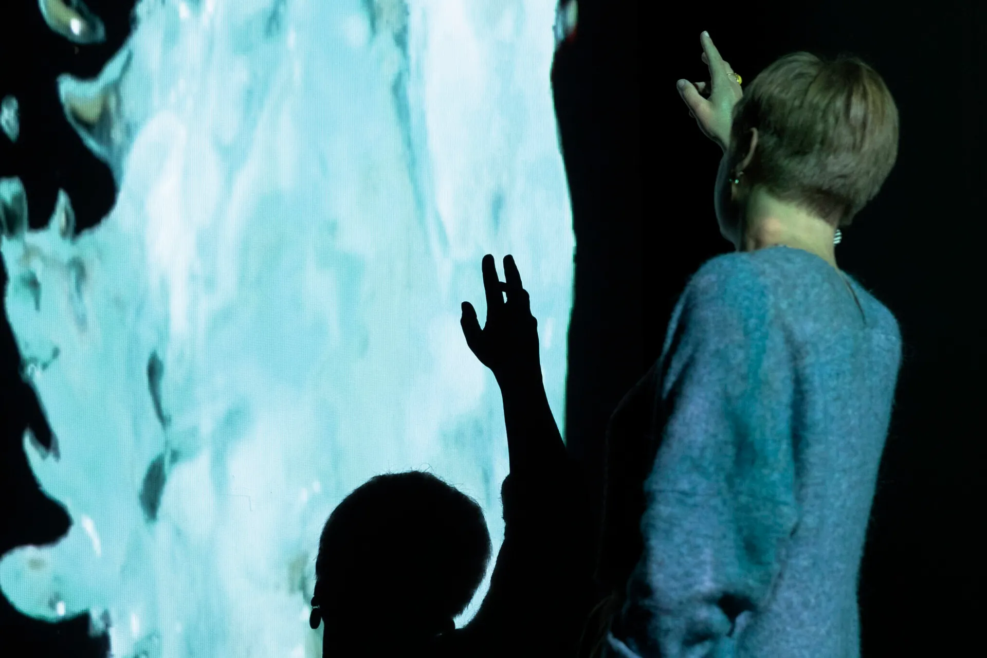 OS Moses by Pasi Rauhala and Lauri Wuolio is a meditative work consisting of video and spatial audio, confusing one’s sense of balance and consisting of four parts. In the video installation, a river flowing under the floor mystically falls towords the ceiling. Three pieces of sound art are located on the bridges in front of the Pekilo, representing an ‘Office package for the oldest user interface in the world’ and its core applications. Playfully conceptual and experience-oriented, the work reflects a world where ancient meditation and breathing exercises can be ordered as cloud services and a mystical experience is a meme software update away.