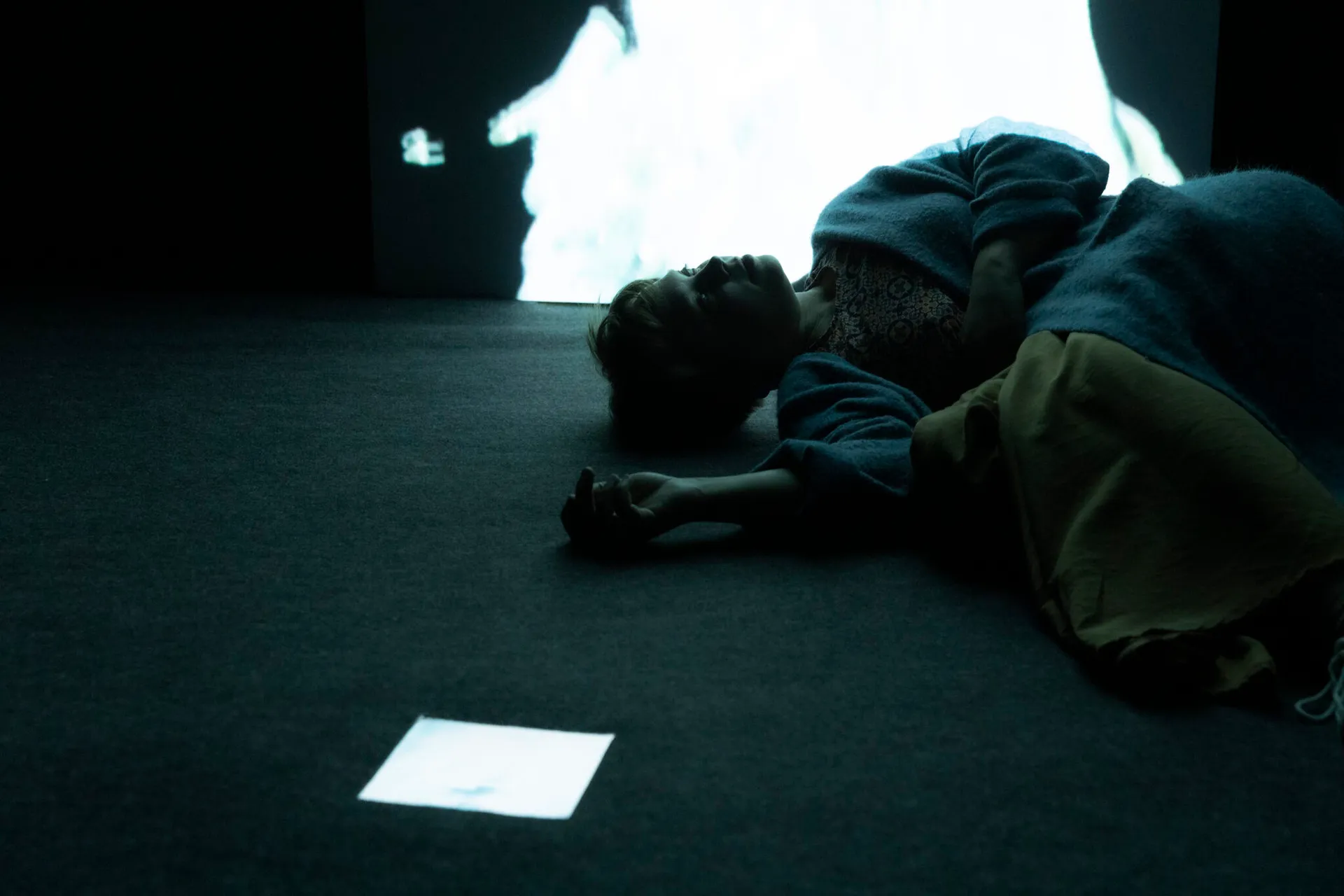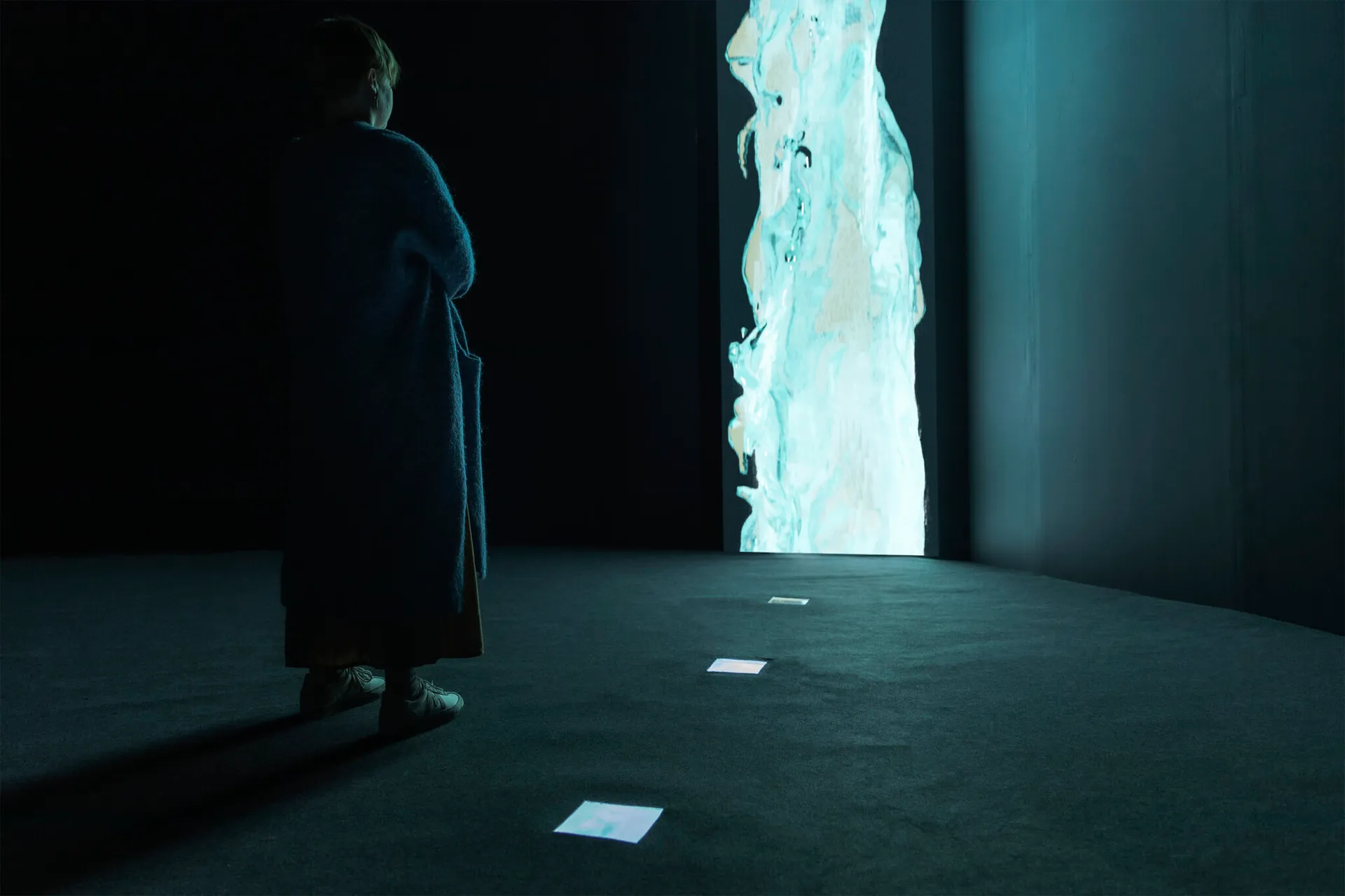 OS Moses by Pasi Rauhala and Lauri Wuolio is a meditative work consisting of video and spatial audio, confusing one’s sense of balance and consisting of four parts. In the video installation, a river flowing under the floor mystically falls towords the ceiling. Three pieces of sound art are located on the bridges in front of the Pekilo, representing an ‘Office package for the oldest user interface in the world’ and its core applications. Playfully conceptual and experience-oriented, the work reflects a world where ancient meditation and breathing exercises can be ordered as cloud services and a mystical experience is a meme software update away.